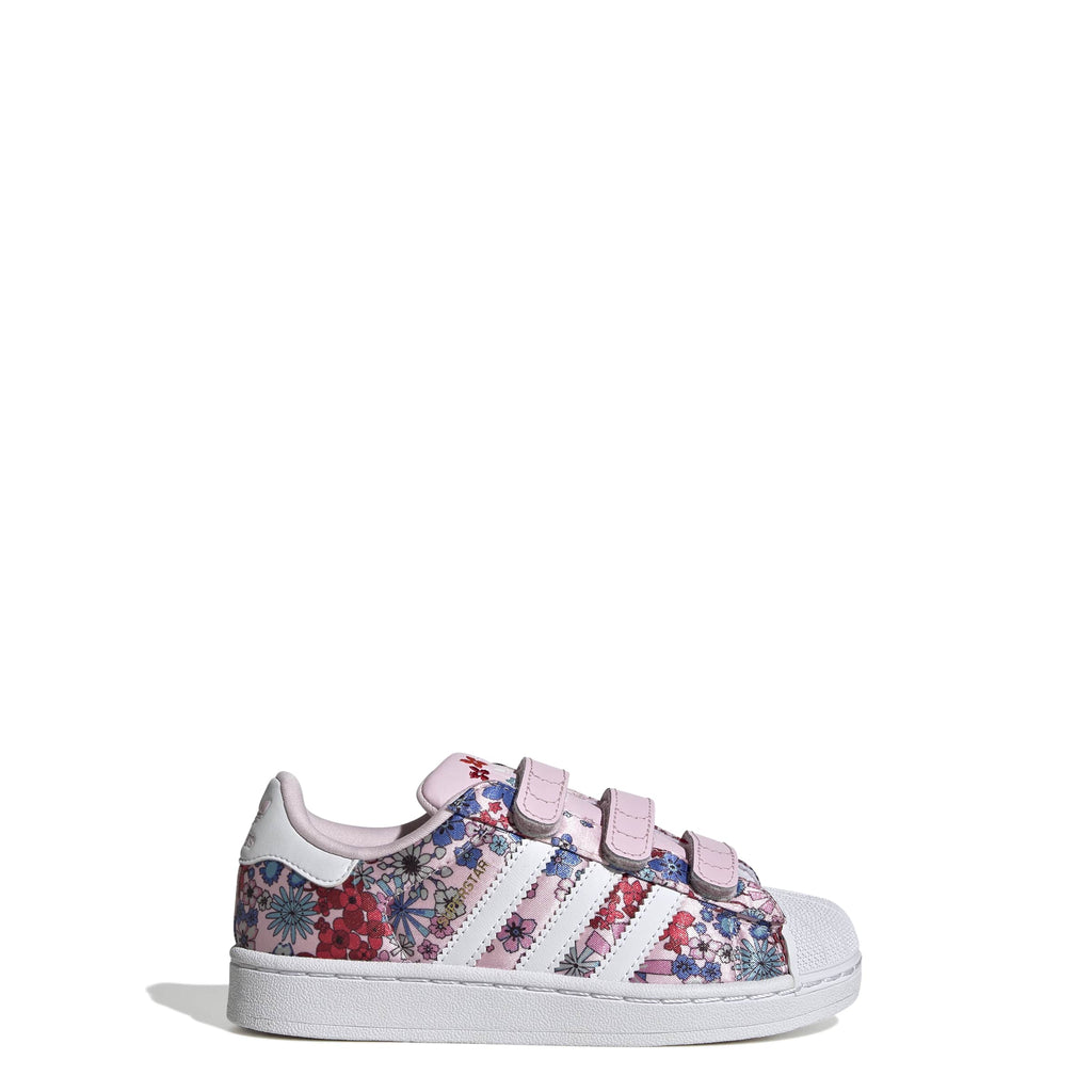 Pantofi cu inchidere confortabila simpla, pentru purtare usoara zi de zi de catre cei mici. Pantofii sport adidas Liberty London Superstar II Comfort Closure combina ce e mai bun din ambele lumi: imprimeurile atemporale Liberty London si designul sport Originals, pentru un look tineresc pe care iubitorii modei il vor adora.